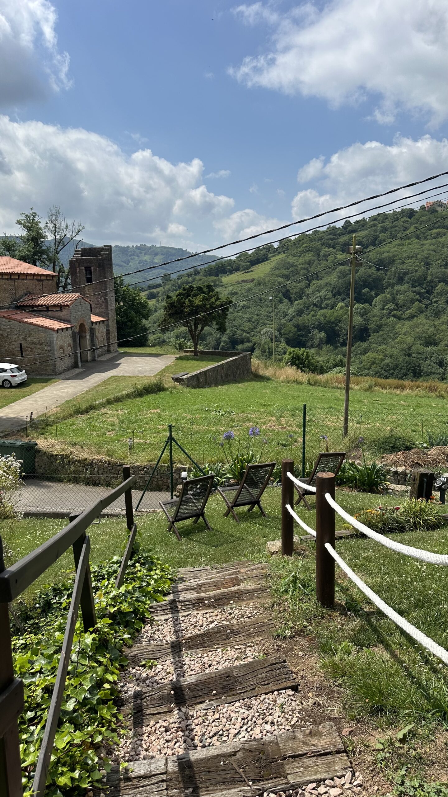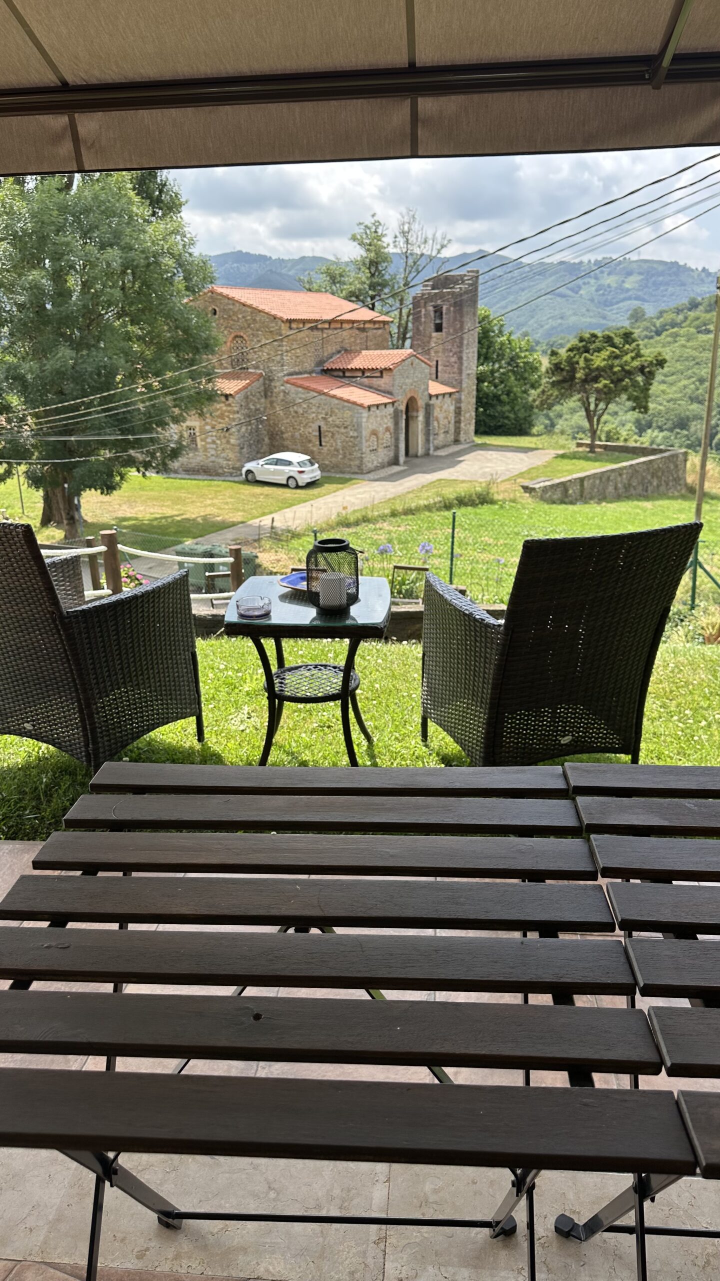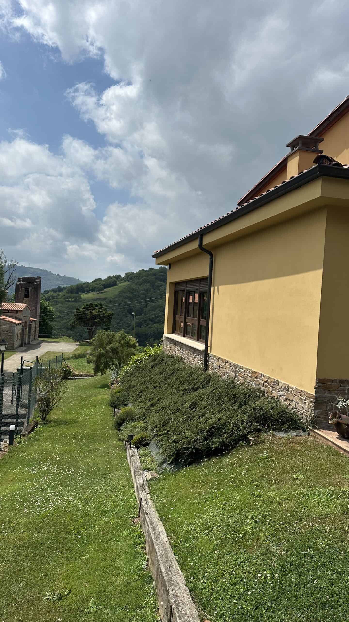 Desde el jardín de 500m² se podrán relajar contemplando el valle además de la preciosa iglesia prerrománica de Bendones totalmente restaurada, de las pocas que conserva el campanario.