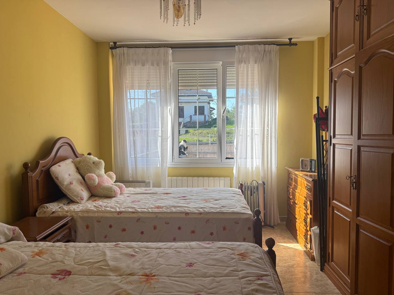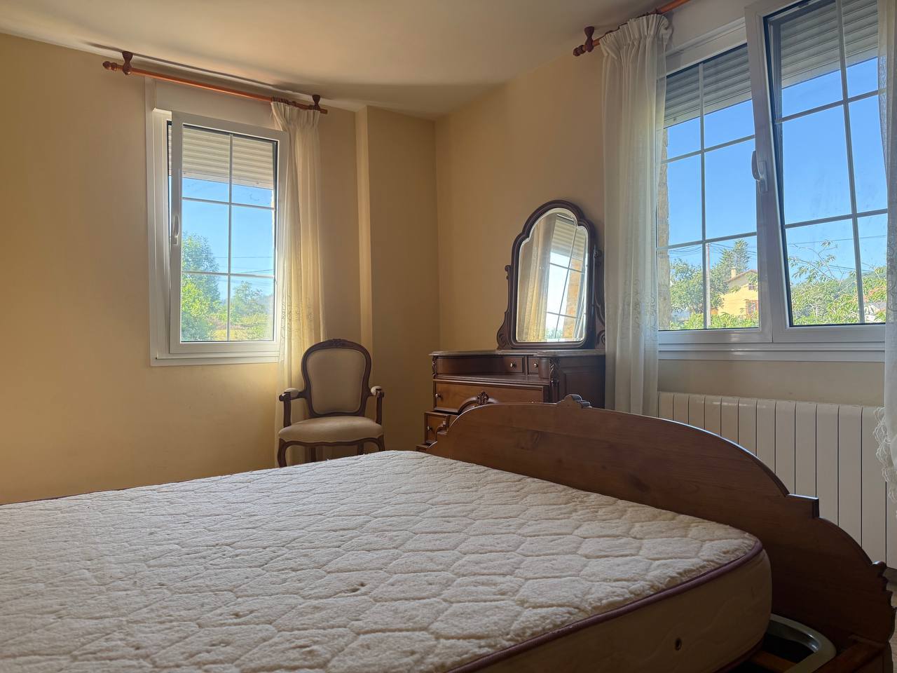 Calefacción independiente de gasoil y carpinterías de doble acristalamiento y mobiliario de maderas nobles (roble y castaño).